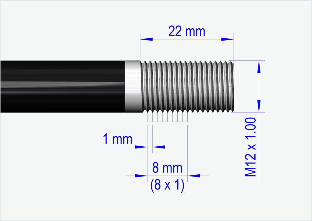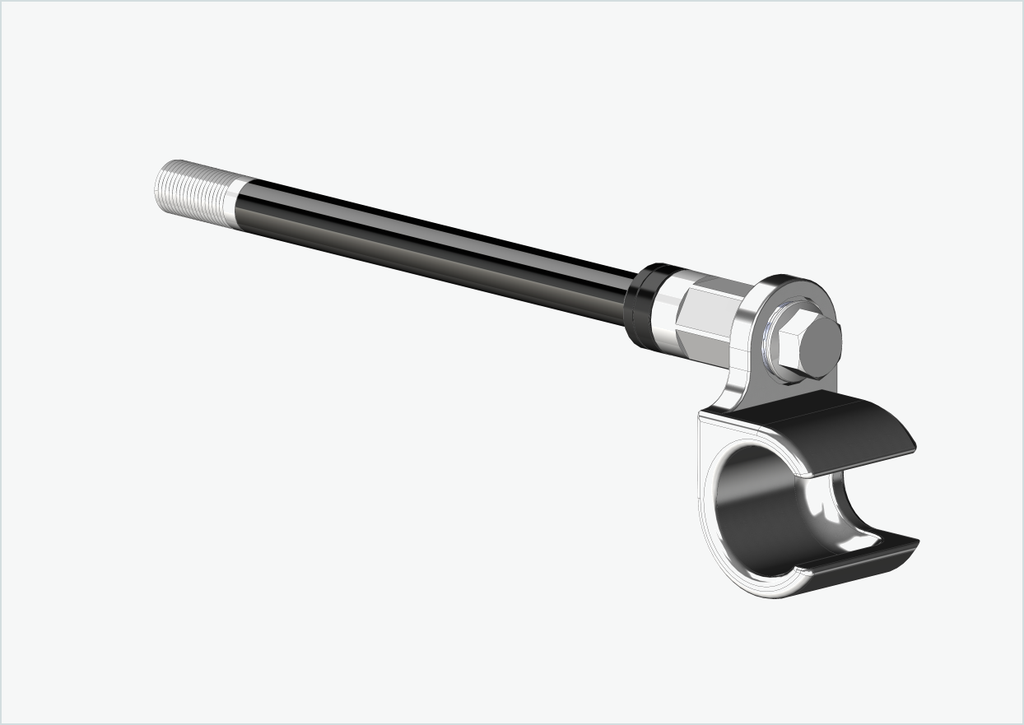 Each of our thru axles is made individually for you. We need the exact installation length [mm] and the thread size (pitch) of your currently installed thru axle.