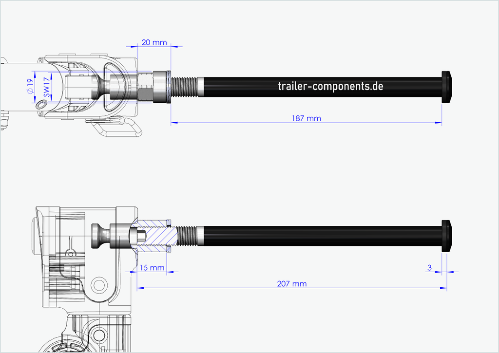 - It is your responsibility to determine the correct thread size and installation length [mm] of your current thru axle on the wheel. Do not attempt to fit our thru axle with adapter in a different thread size in your rear hub. An incorrect thread size can damage your bike. If you are unsure about the correct thread size and installation length, please contact us by email or phone and we will be happy to help you.