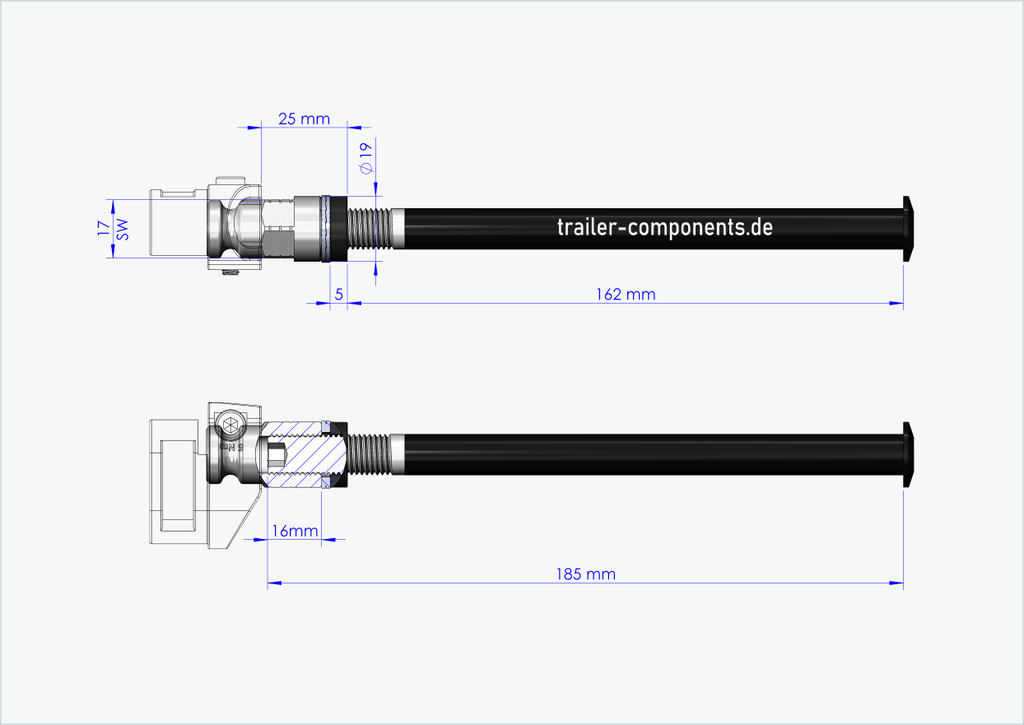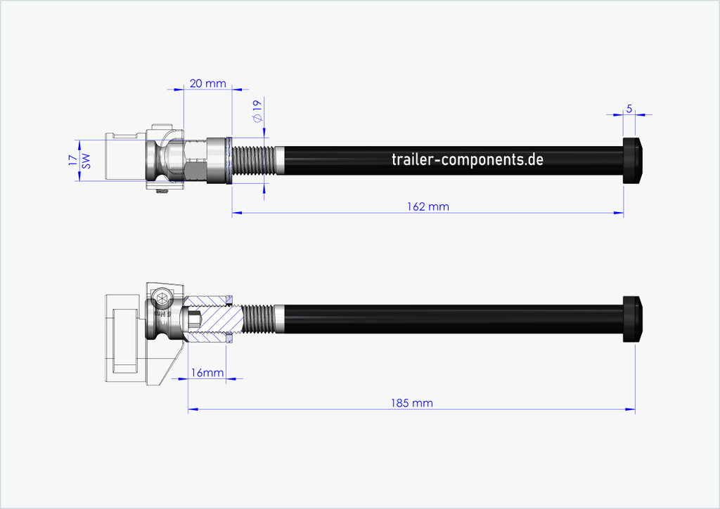 - It is your responsibility to determine the correct thread size and installation length [mm] of your current thru axle on the wheel. Do not attempt to fit our thru axle with adapter in a different thread size in your rear hub. An incorrect thread size can damage your bike. If you are unsure about the correct thread size and installation length, please contact us by email or phone and we will be happy to help you.