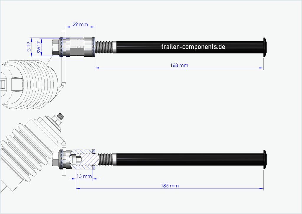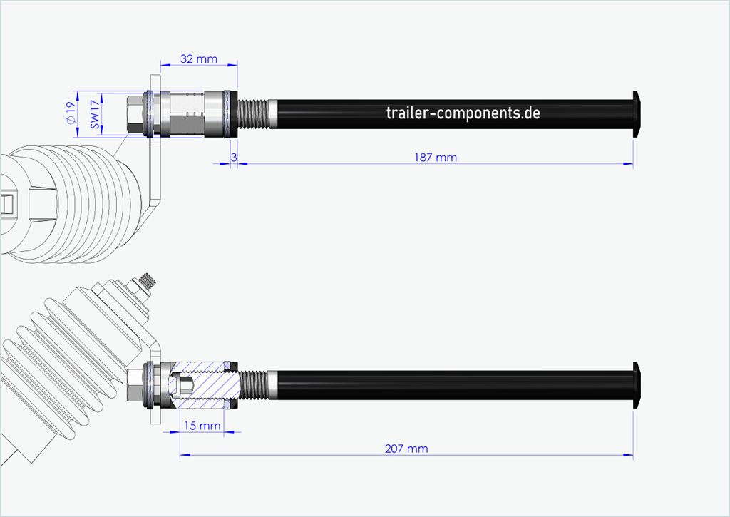 - It is your responsibility to determine the correct thread size and installation length [mm] of your current thru axle on the wheel. Do not attempt to fit our thru axle with adapter in a different thread size in your rear hub. An incorrect thread size can damage your bike. If you are unsure about the correct thread size and installation length, please contact us by email or phone and we will be happy to help you.