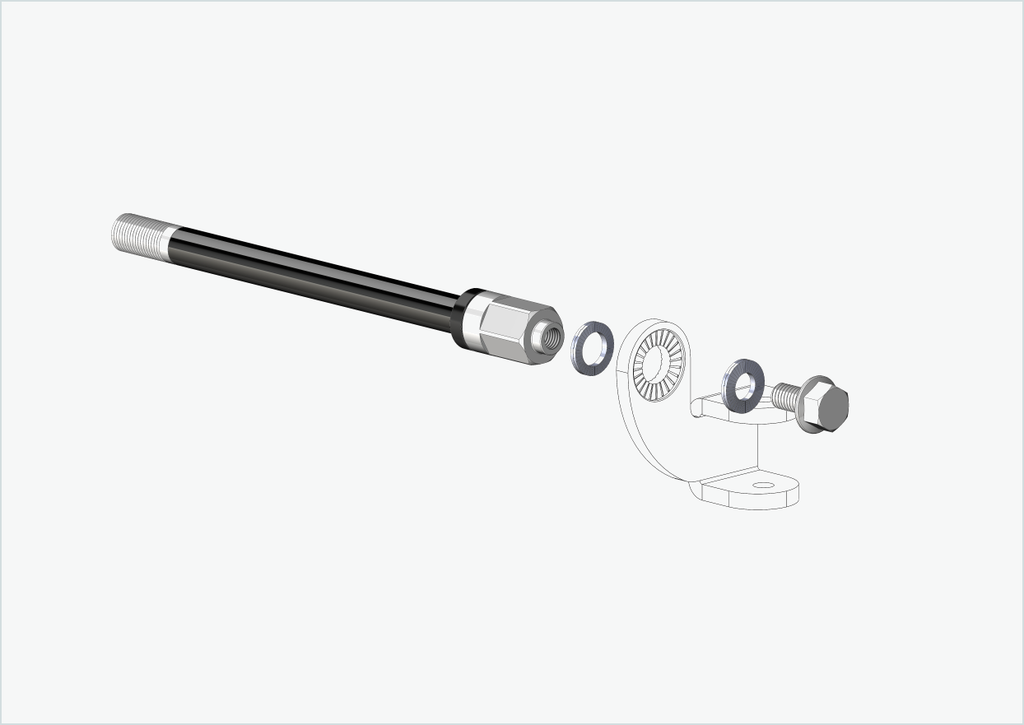 - It is your responsibility to determine the correct thread size and installation length [mm] of your current thru axle on the wheel. Do not attempt to fit our thru axle with adapter in a different thread size in your rear hub. An incorrect thread size can damage your bike. If you are unsure about the correct thread size and installation length, please contact us by email or phone and we will be happy to help you.
